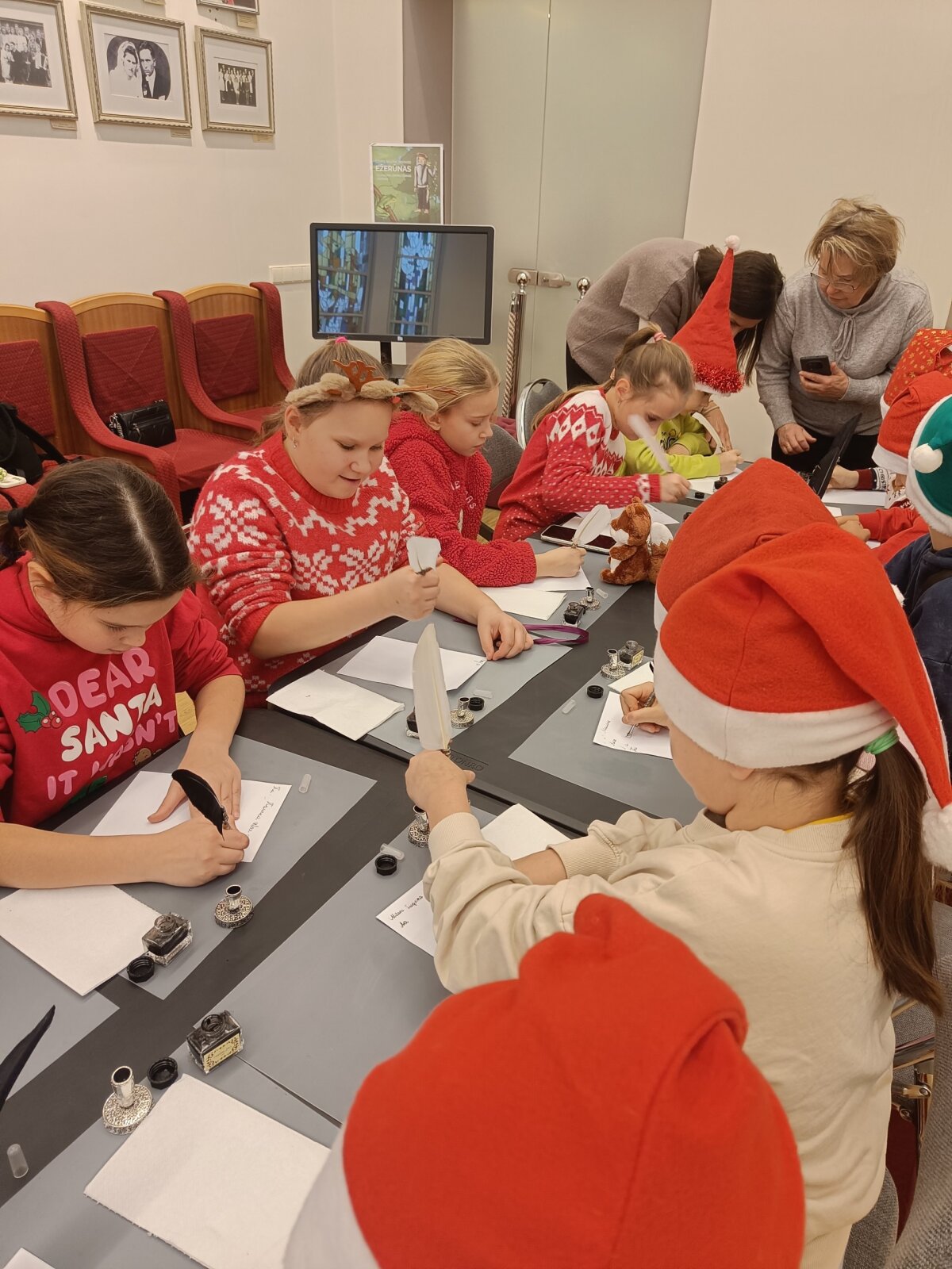 Mokiniai, šventiškai pasipuošę ir kupini Kalėdų laukimo, traukiniu vyko į Ignaliną. Lankėsi Ignalinos krašto muziejuje ir dalyvavo edukacijoje „Plunksnos raštas“. Jos metu ketvirtokai susipažino su rašto istorija nuo pat jo atsiradimo. Praktinės dalies metu išmėgino rankos miklumą, rašydami plunksnakočiu laišką, kurį, įdėję į voką, užantspaudavo specialiu vašku. Esame įsitikinę, kad mokinių laiškai pasieks visus adresatus-mamas, tėčius, brolius, seseris ir kitus brangius žmones.