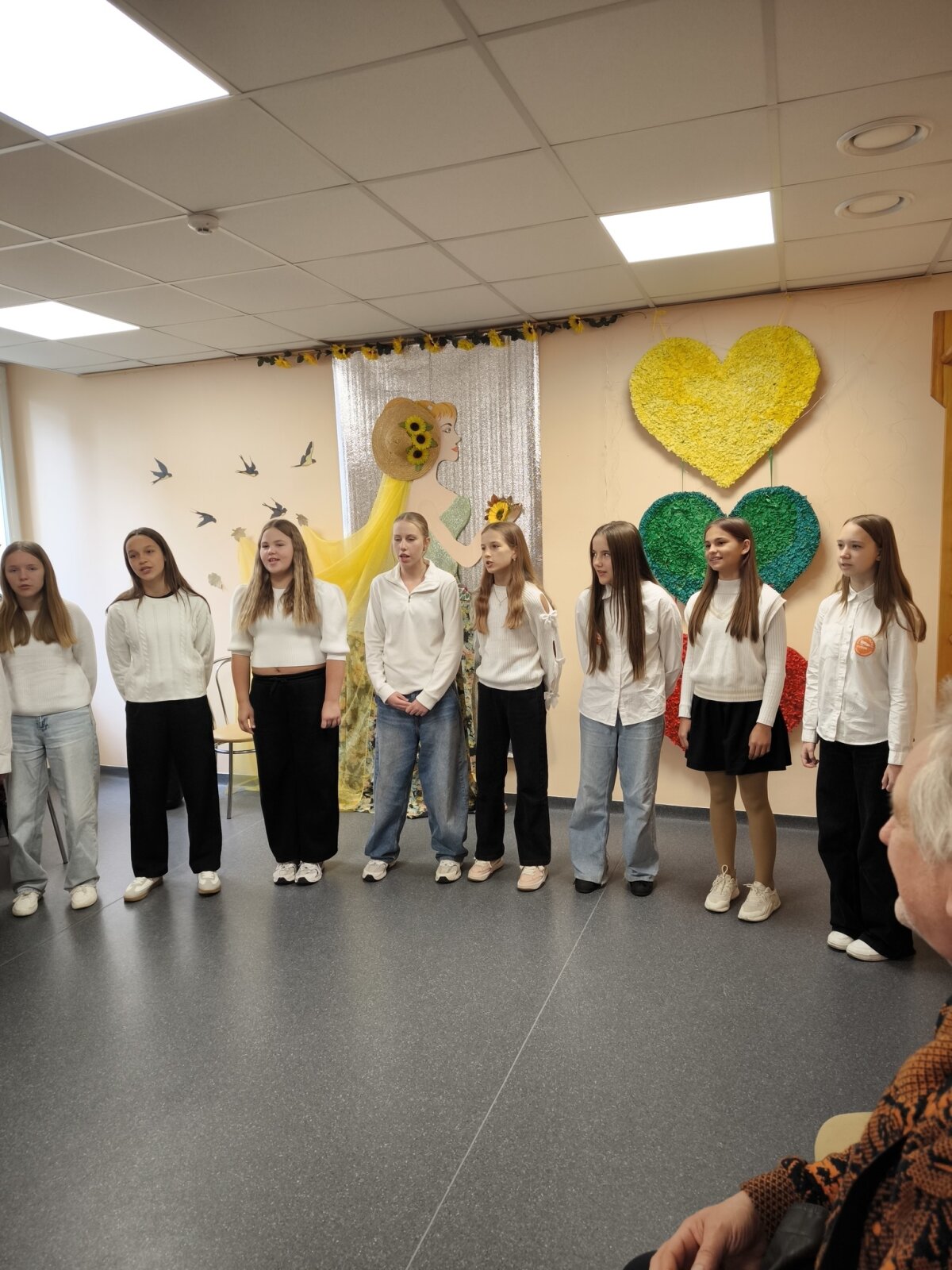 Spalio 1-ąją minėjome Tarptautinę pagyvenusių žmonių dieną. Šia proga mūsų progimnazijos 4a, 4b ir 7a klasių mokiniai lankėsi Visagino socialinių paslaugų centre, Socialinės globos senyvo amžiaus žmonėms ir suaugusiems asmenims su negalia skyriuje.