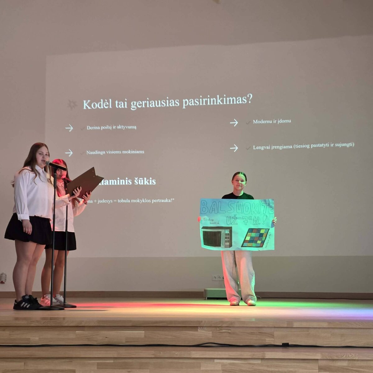 Konkurso finalas vyks balandžio 23 dieną. Nugalėtoją išrinks patys 5–8 klasių mokiniai balsavimo būdu, todėl procesas tampa demokratiškas ir įtraukiantis.
