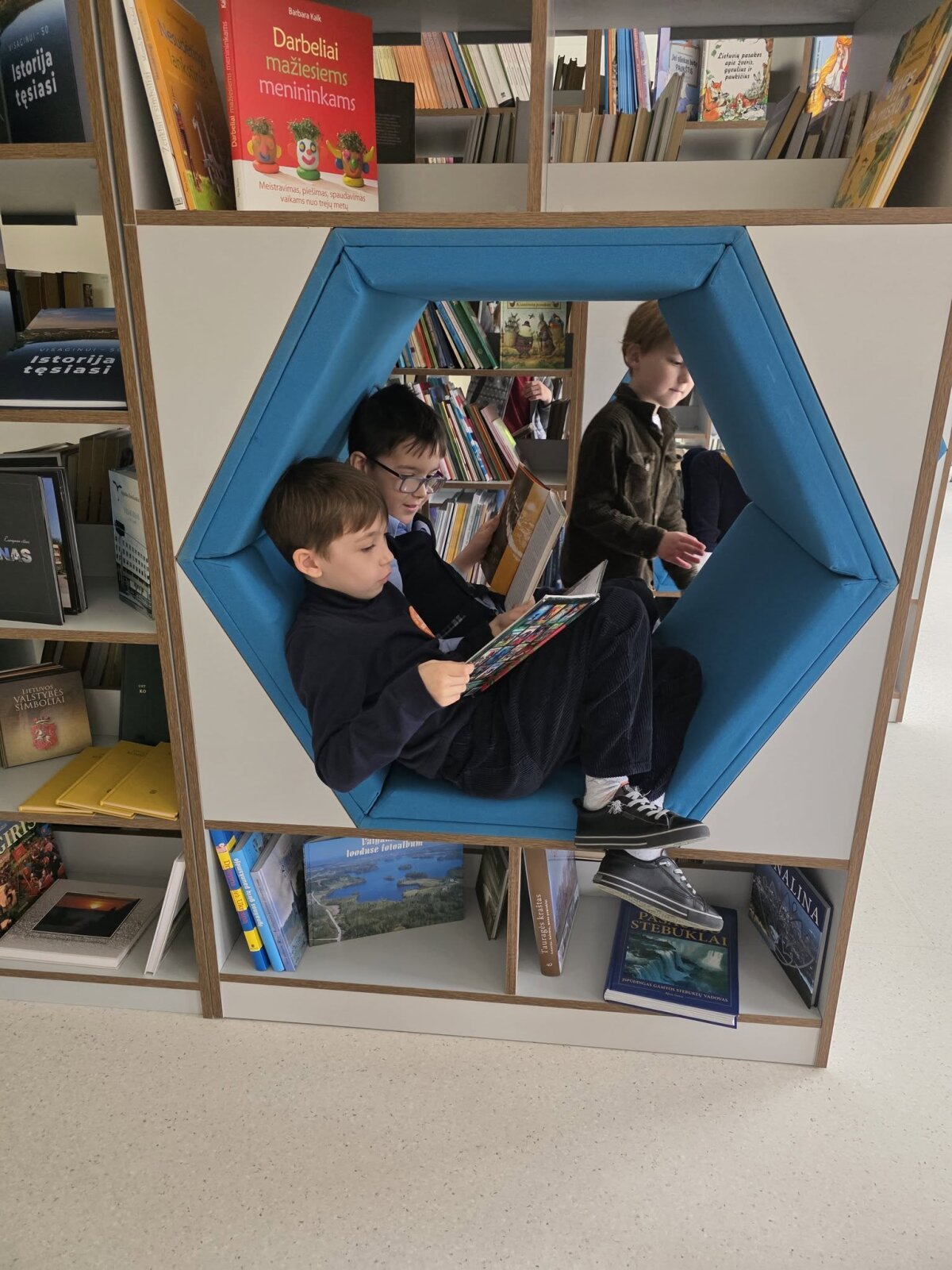Dėkojame bibliotekos vedėjai Valentinai Šikšnian už šiltą priėmimą, įdomų pasakojimą ir išsamų knygų pristatymą. Tokios pamokos skatina mokinių smalsumą, ugdo skaitymo įgūdžius bei padeda atrasti naujas mokymosi erdves.